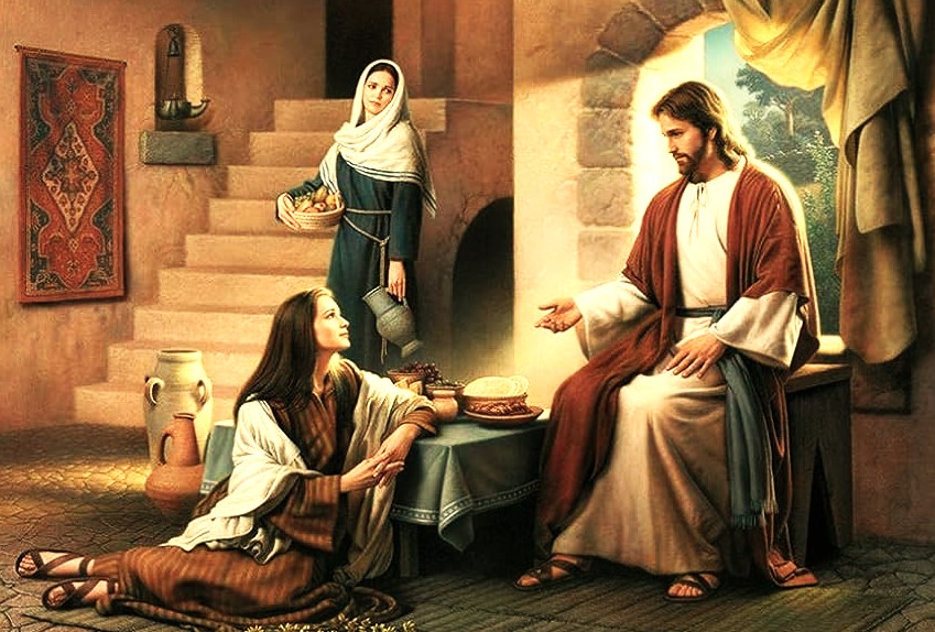 இயேசுவை முதலில் வீட்டிற்குள் ஏற்றுக்கொண்டது மார்த்தாள்தான், ஆனால் இயேசுவின் பாதத்தில் அமர்ந்திருந்தது மரியாள்.
